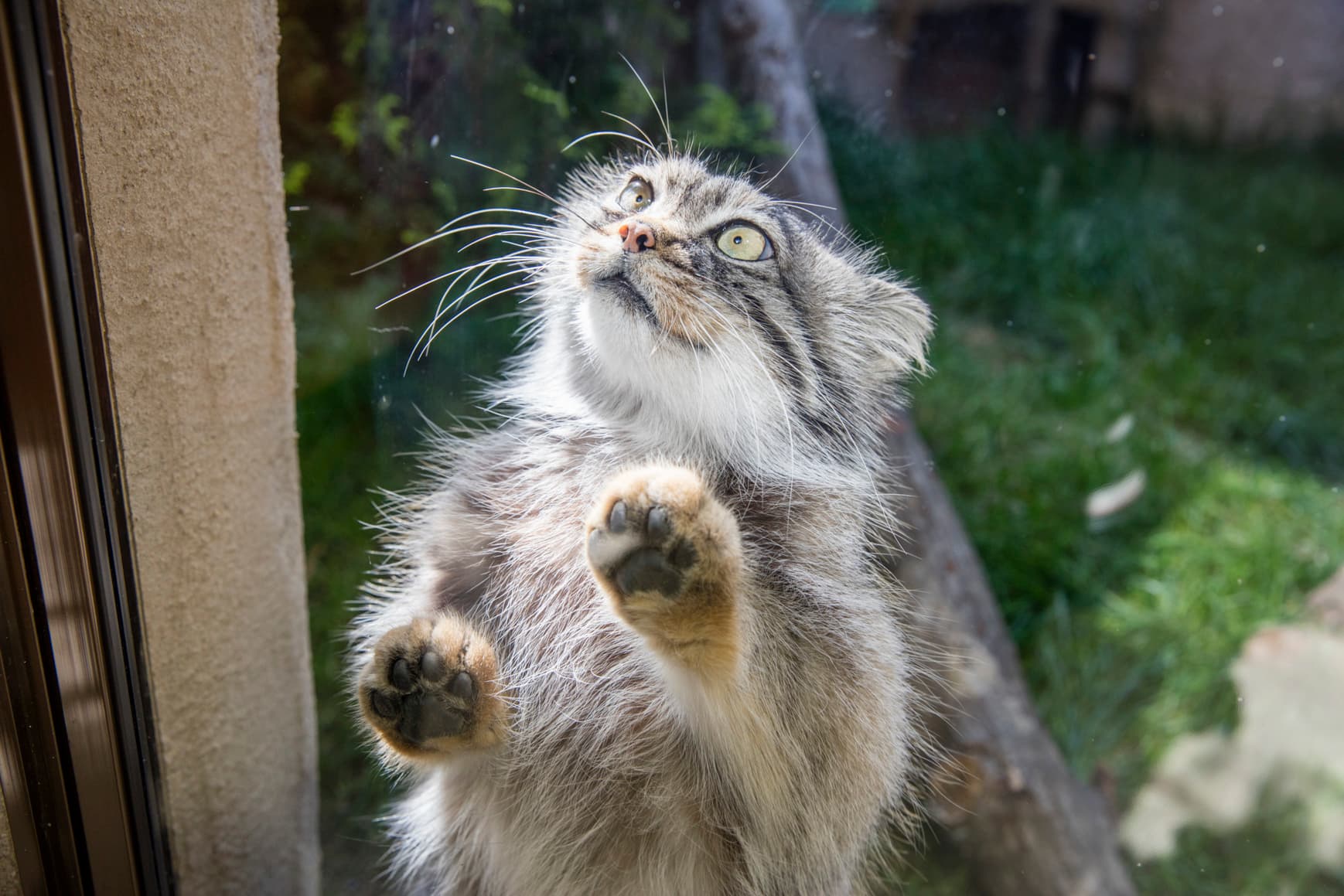 壁ドンするマヌルネコ!?|那須どうぶつ王国