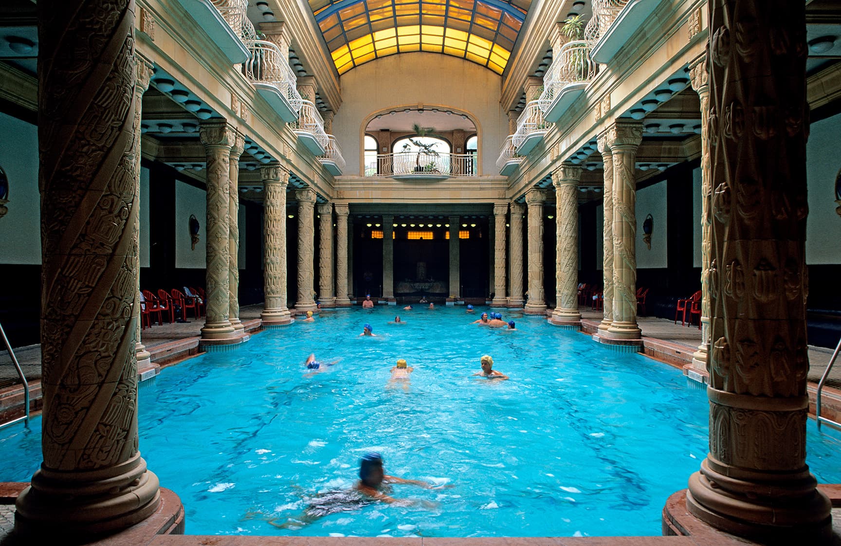 1918年開業。設計:レヒネル・エデン。湯けむりの街、ブダペストにはこんなアールヌーボーなプールと温泉がある。写真は1本ずつ違う装飾が施された円柱が並ぶ屋内プール。1845年生まれ、分離派建築を基本にマジャール民族らしさを追究したハンガリーの建築家、レヒネル・エデンが設計した。花や星をモチーフに土俗的な色合いで焼かれたジョルナイ工房のタイルを使った装飾が特徴。イスラムやインド建築を思わせる、うねるような造形は後のハンガリー建築に大きな影響を与えた。ブダペストにはほかに〈国立応用美術館〉や〈国立地質学研究所〉などの作品も。街全体が「ハンガリーのガウディ」とも称されるレヒネルの建築博物館だ。