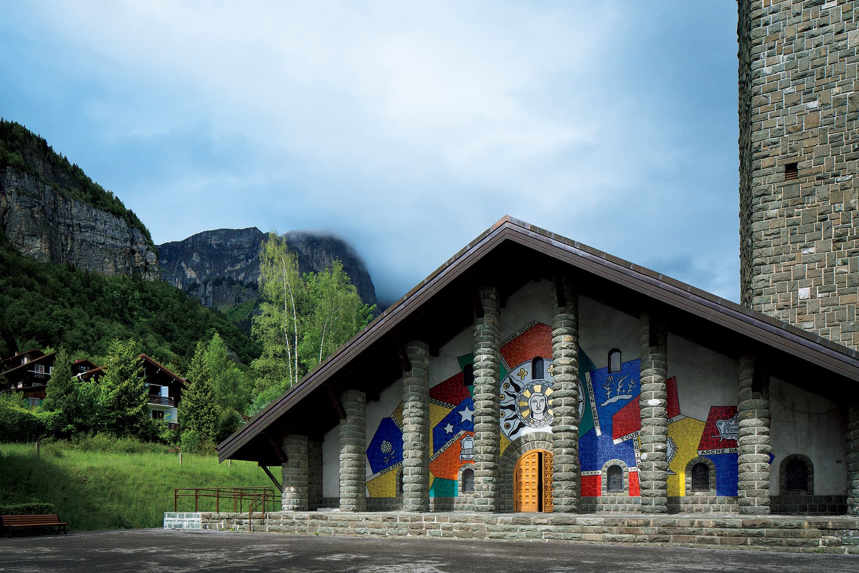 1946年竣工、1950年献堂。設計:モーリス・ノヴァリナ。1920年代からの結核療養地に建てられた教会。石、エゾマツ、スレート瓦といった地元の資材を使った山小屋風の建物。身廊、2つの側廊、会衆席、地下礼拝堂を備える。教会装飾にはルオー、マティス、シャガールなど20数名の芸術家が携わり、ステンドグラスやタイル画、十字架などを製作。ジャン・ドゥベミィ神父とマリー=アラン・クチュリエ神父の指揮の下、伝統的なカトリシズムとは異なる新しい宗教芸術を体現している。