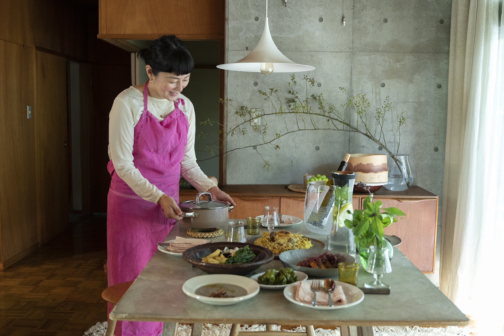 「仕事柄、鍋はたくさん持っていて、それぞれに愛着があるけれど、頻繁に使うのは、自分の生活スタイルにフィットしていて、機能性にすぐれているもの。シンプルな調理工程で、素材の味を引き出し、おいしい一皿に仕上げてくれる〈WMF(ヴェーエムエフ)〉の《フュージョンテック ミネラル》シリーズは、ヘビーローテーションアイテムの一つです。天然鉱石から生まれた独自のミネラル素材の鍋が食材の味をしっかり引き出してくれるので、手間も調味料も必要最低限でOK。旬の食材が持つ力強い味を、存分に楽しめます。アツアツを食卓へ運び、すぐに食べたい派なので、テーブルウエアとしてインテリアに馴染むデザインも嬉しい限りです」